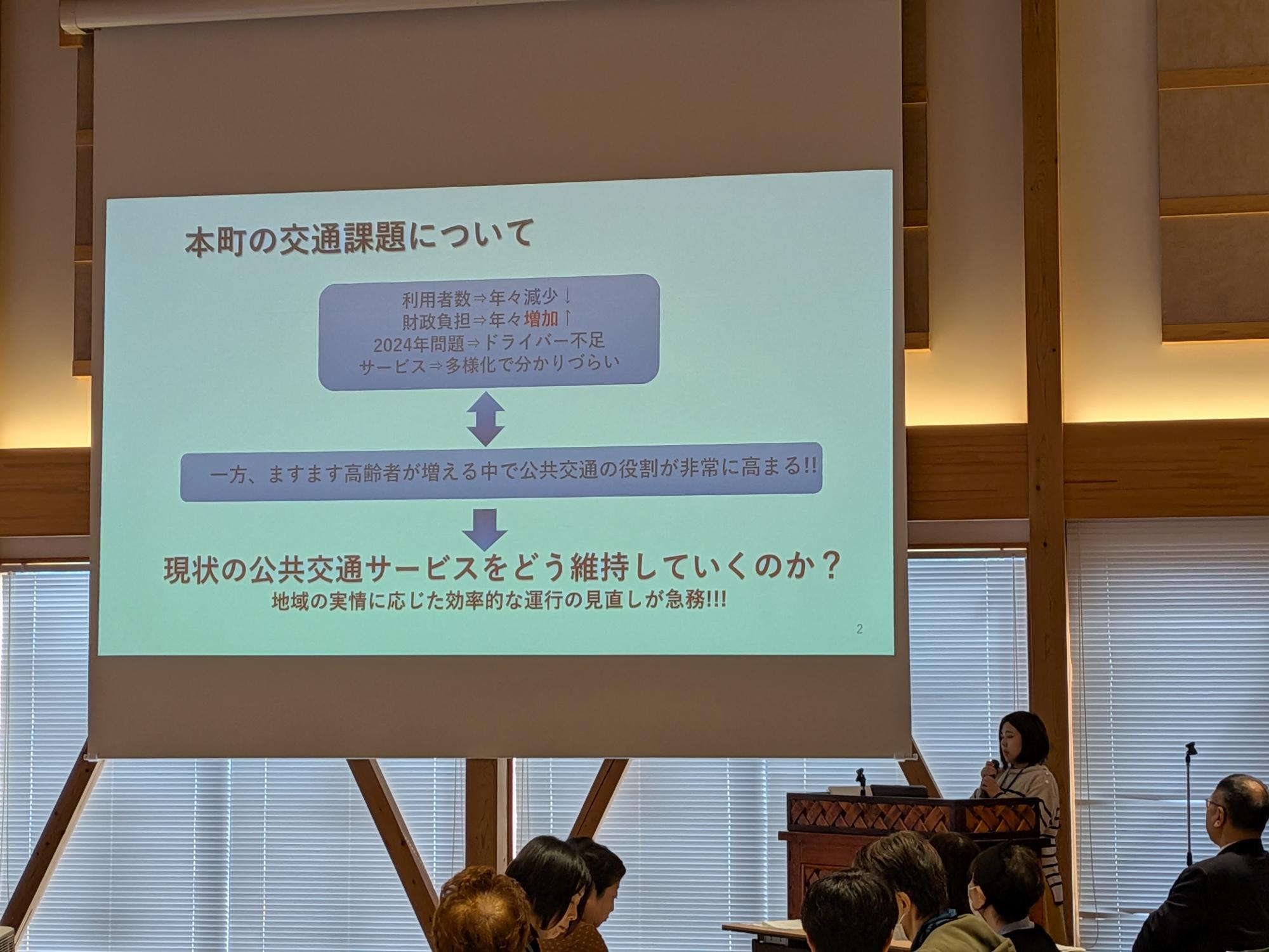 町は、これまでの調査によって得られたデータを元に交通課題の整理・分析を行い、町全体の公共交通の再編に向けスピード感をもって進めて参ります。