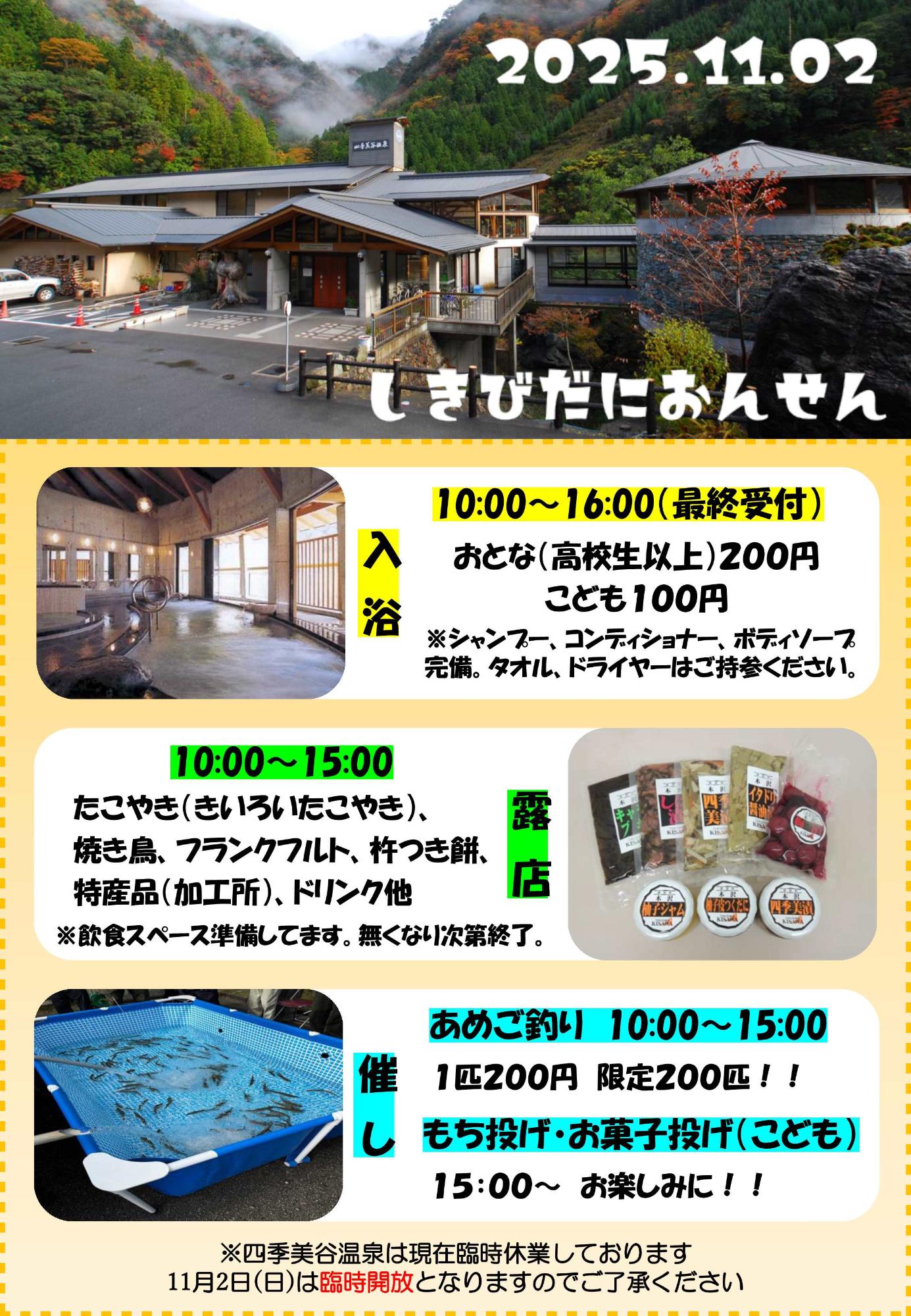 現在臨時休業中の四季美谷温泉を臨時開放します!