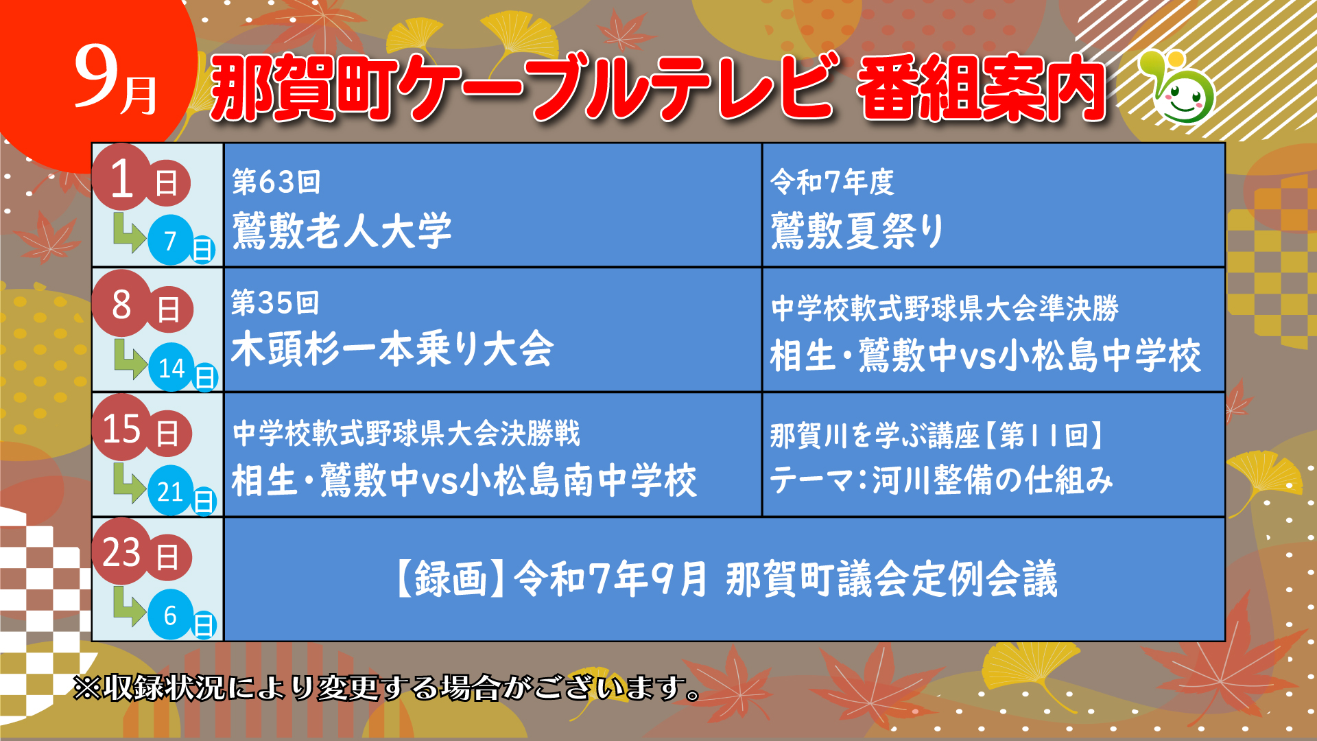 今月も那賀町ケーブルテレビをよろしくお願いいたします。