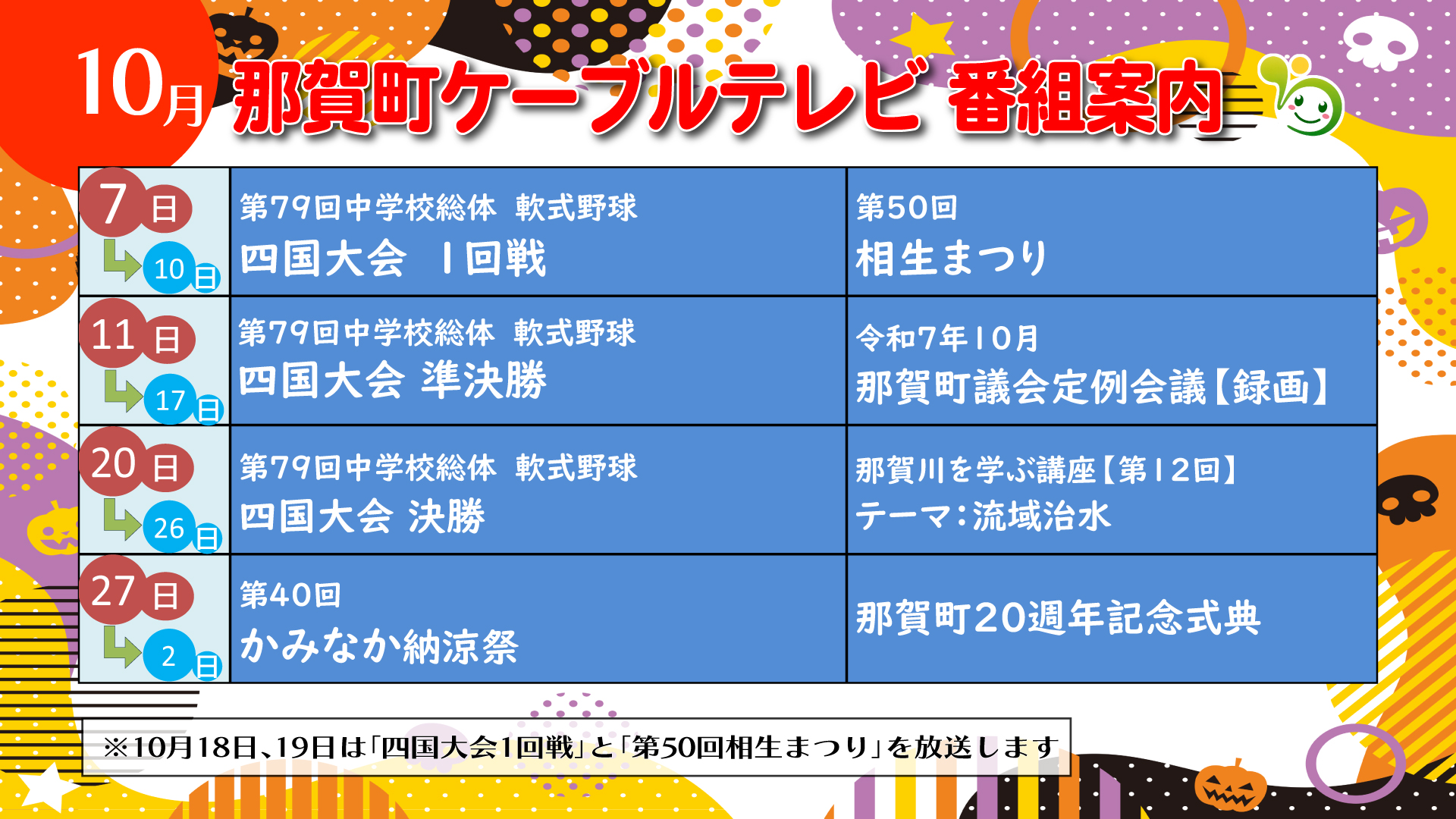 さらに「第50回相生まつり」、「那賀町20周年記念式典」も放送予定!