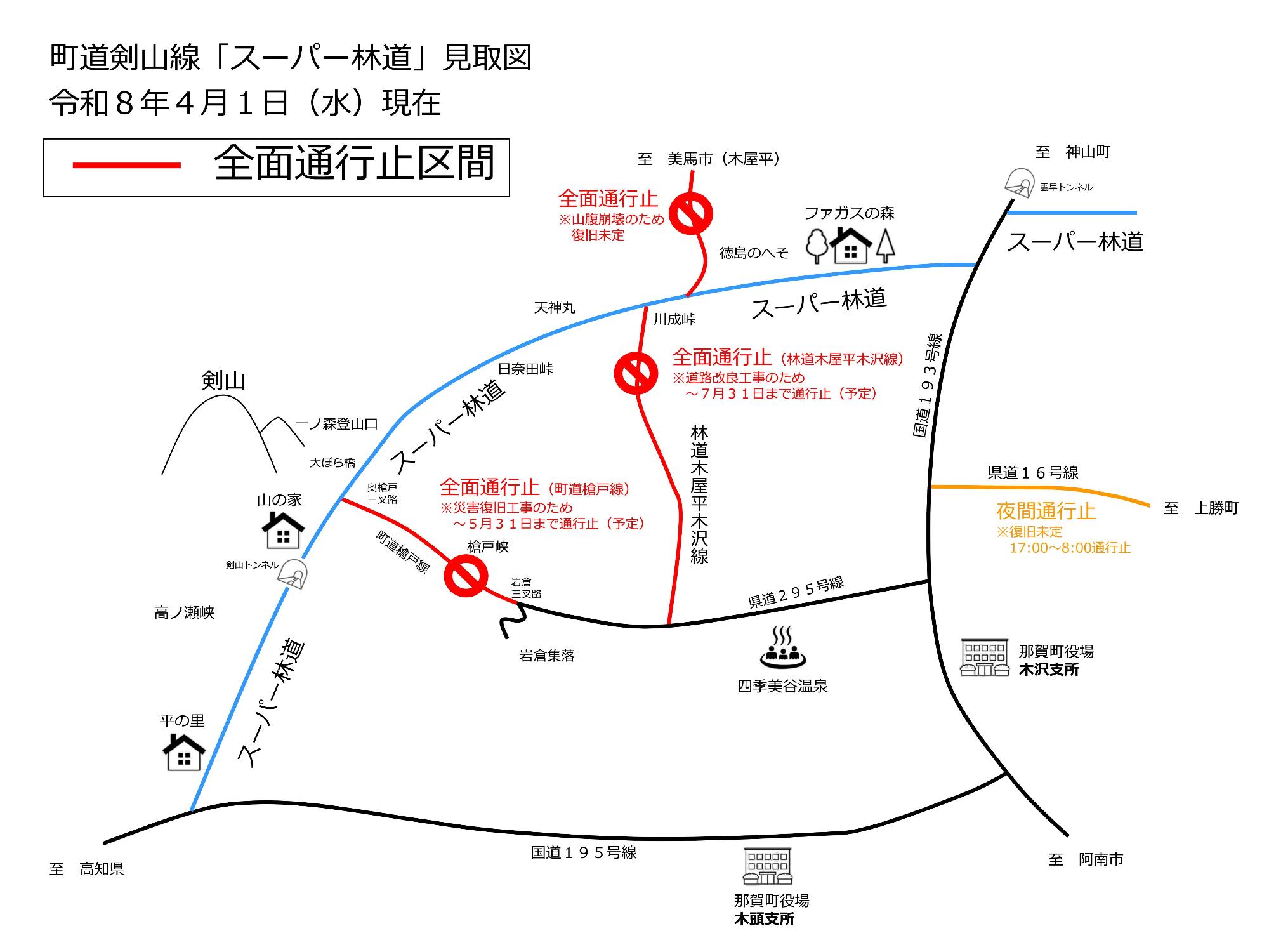 那賀町管内スーパー林道及び接続道の通行状況について(4/1)