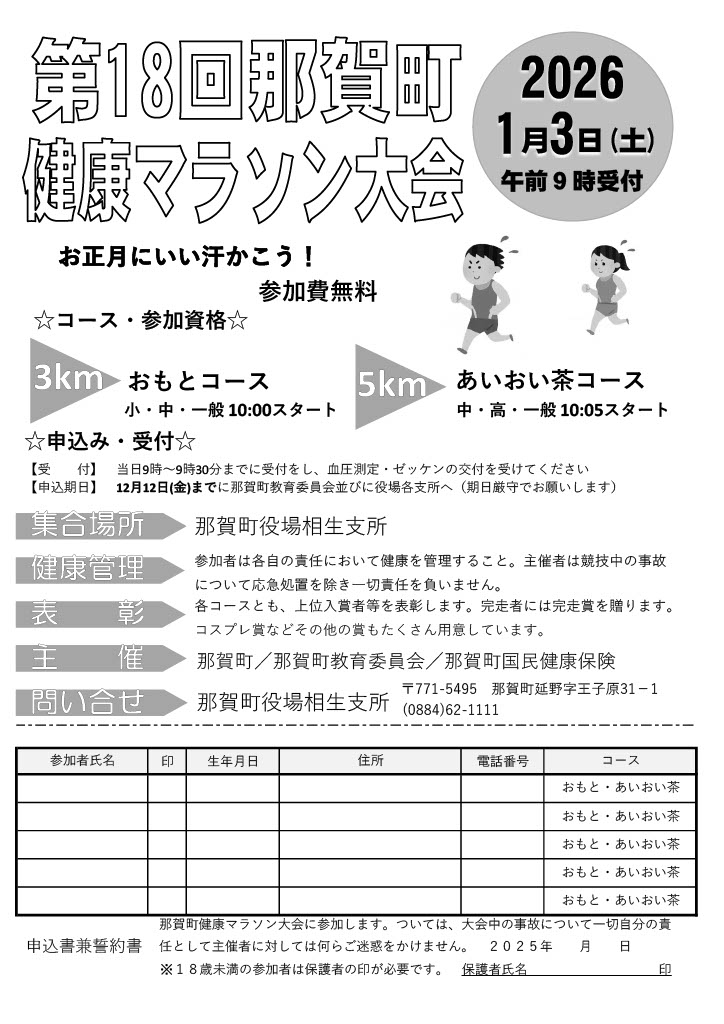 お正月にいい汗かこう!第18回 那賀町健康マラソン大会開催について