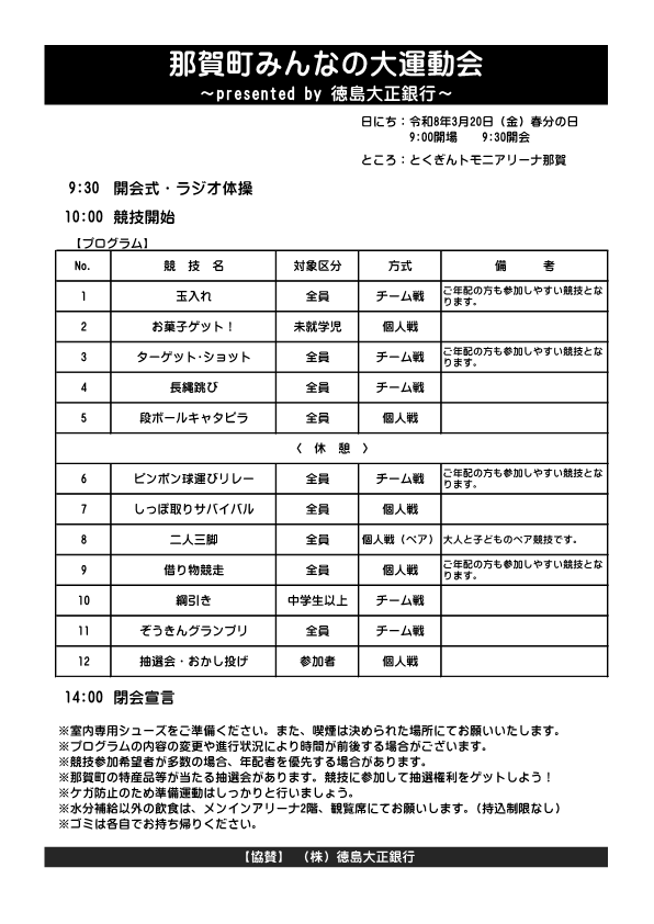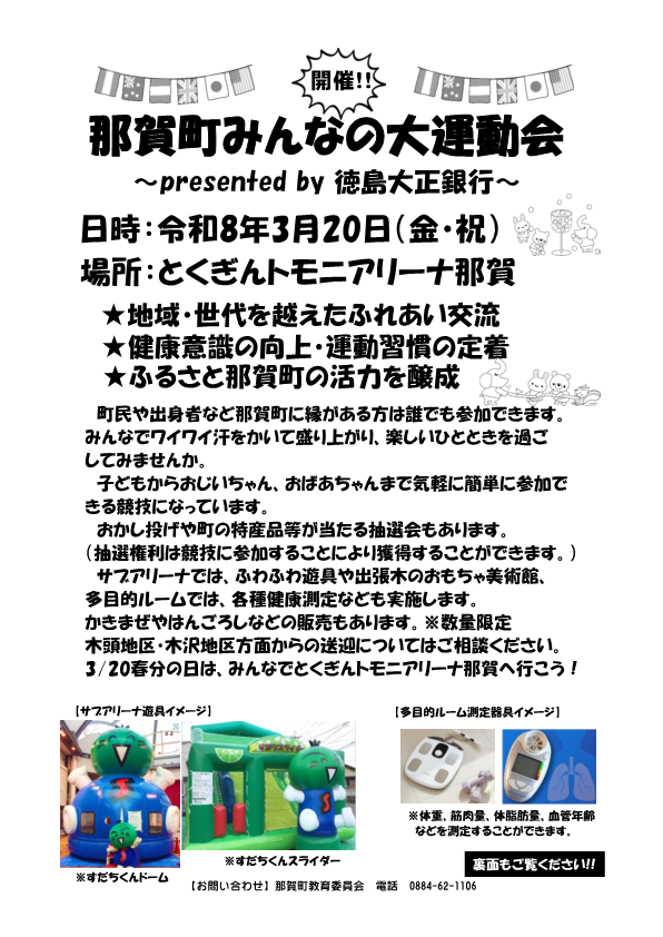 3月20日開催!『那賀町みんなの大運動会~presented by 徳島大正銀行~』