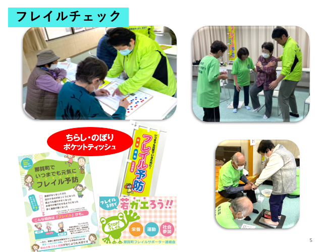 那賀町では、社会福祉協議会に事業委託し、フレイル予防のための取組みを進めています。