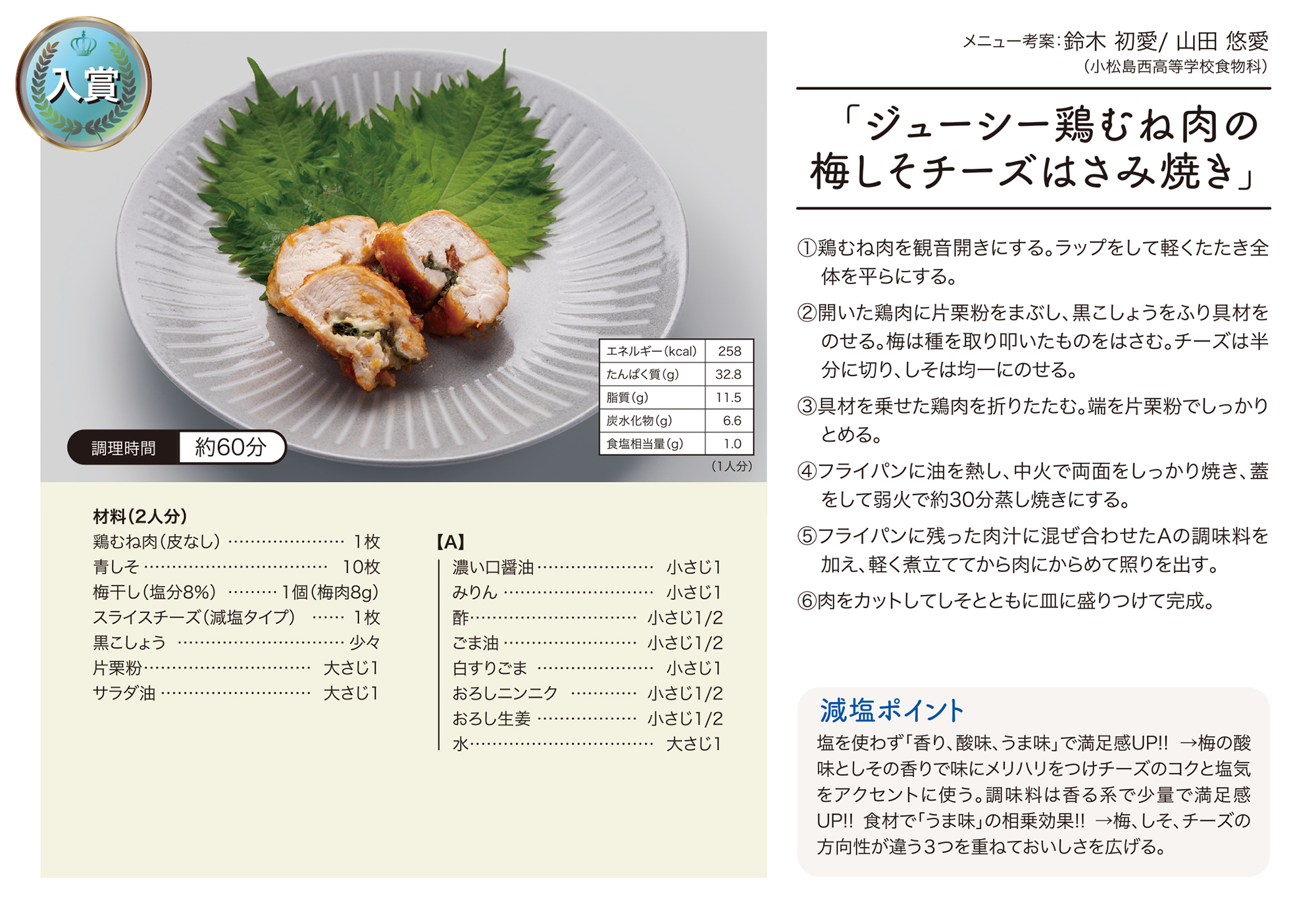 入賞 「ジューシー鶏むね肉の梅しそチーズはさみ焼き」