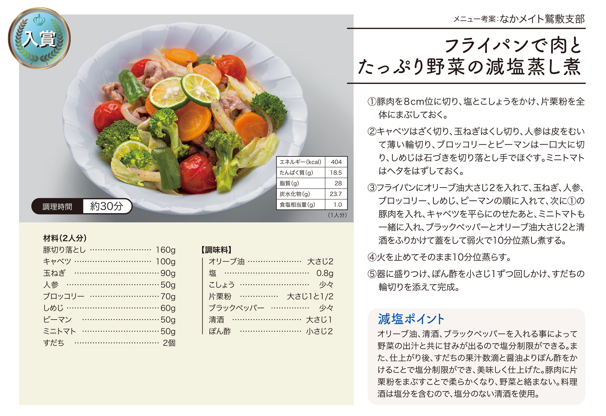 入賞「フライパンで肉とたっぷり野菜の減塩蒸し煮」