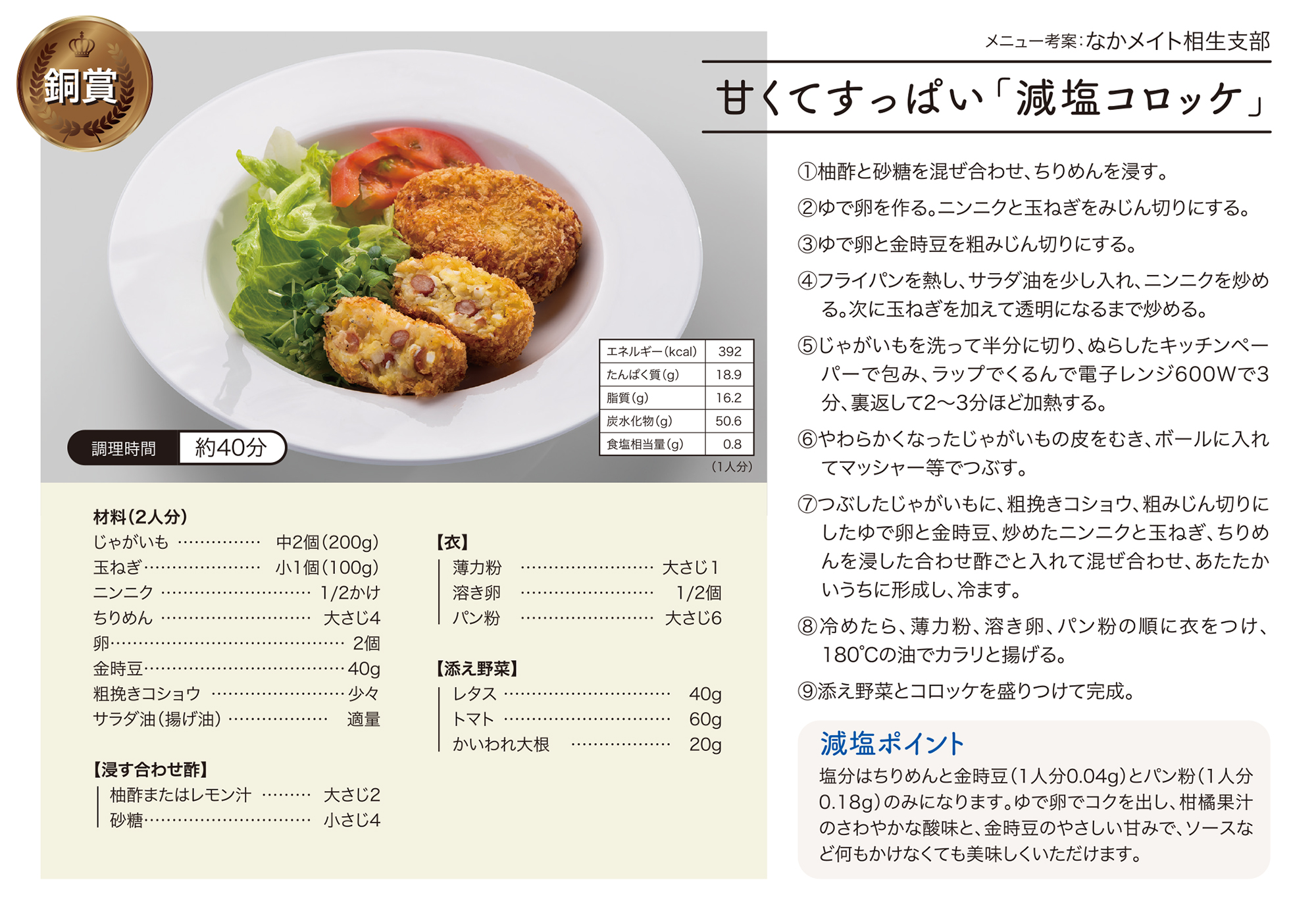 銅賞 「甘くてすっぱい「減塩コロッケ」」