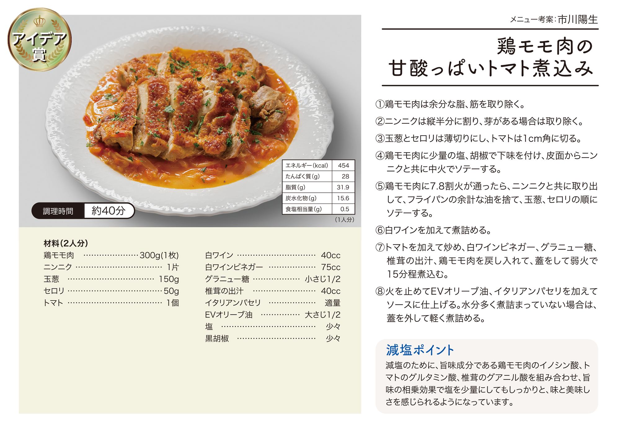 アイデア賞 「鶏モモ肉の甘酸っぱいトマト煮込み」
