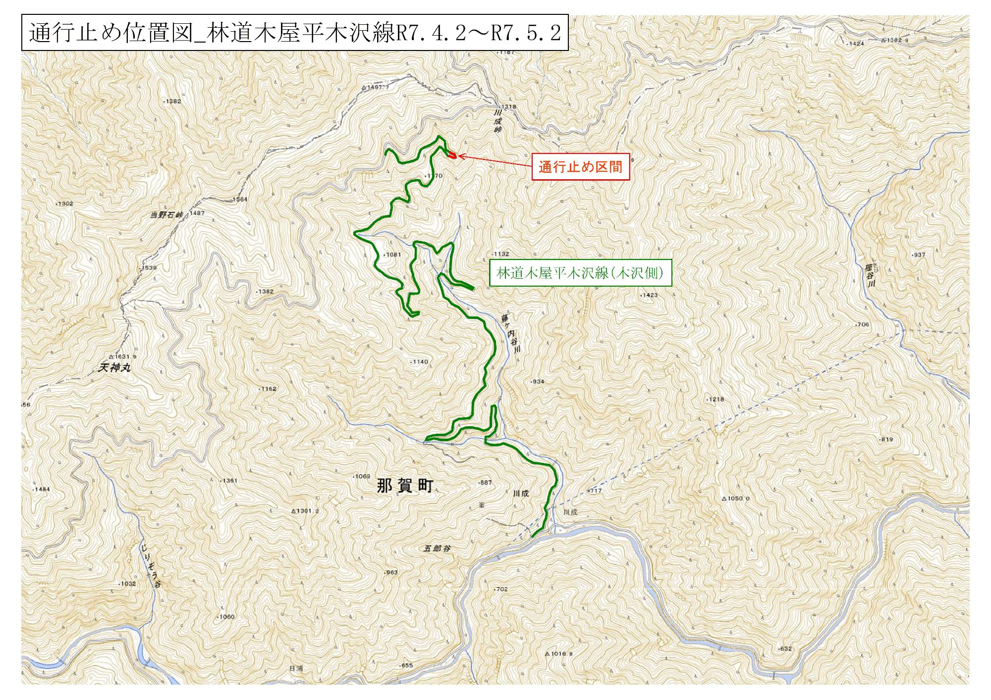 林道木屋平木沢線(木沢側)道路改良工事による通行止めについて(R7.4.7~R7.5.2)